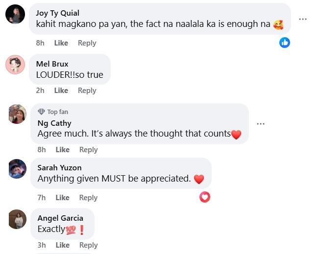 Several netizens left a comment on Jax's Facebook post. One even said, “kahit magkano pa yan, the fact na naalala ka is enough na.”