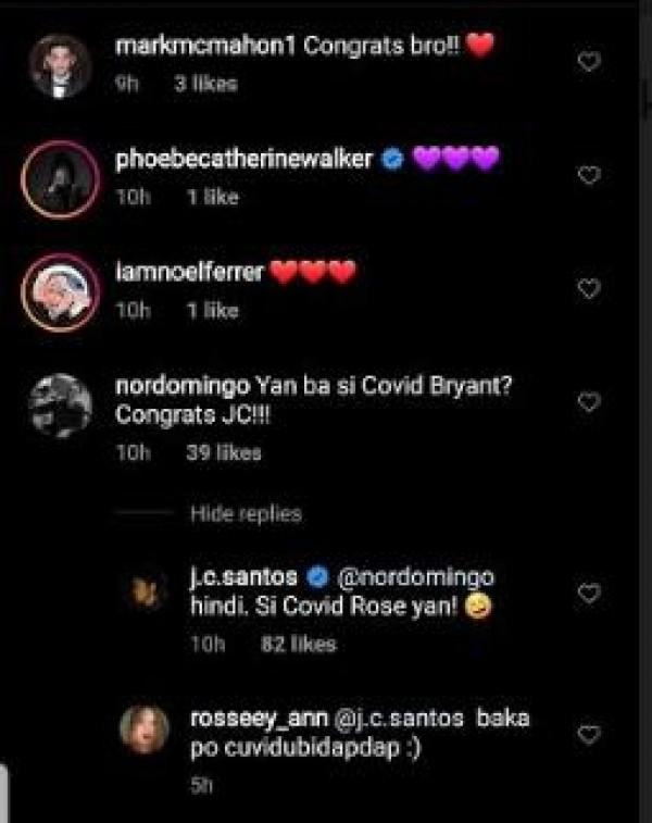 Makikita rin sa comment section ng kanyang post ang pakikipagbiruan ng first-time celebrity dad sa isang netizen kung ito na si COVID Bryant.