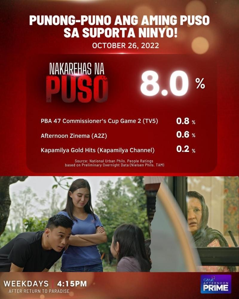 Patuloy na panoorin ang Nakarehas Na Puso, Lunes hanggang Biyernes, 4:15 p.m. sa GMA Afternoon Prime pagkatapos ng Return To Paradise.
