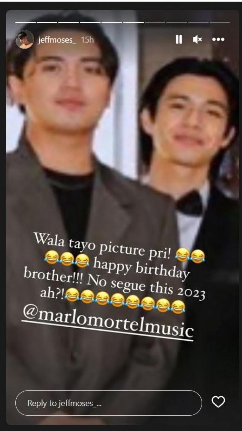In his Instagram Story, Jeff shared a throwback photo with the birthday boy and said, “Wala tayo picture pri! Happy Birthday brother! No segue this 2023 ah?!”