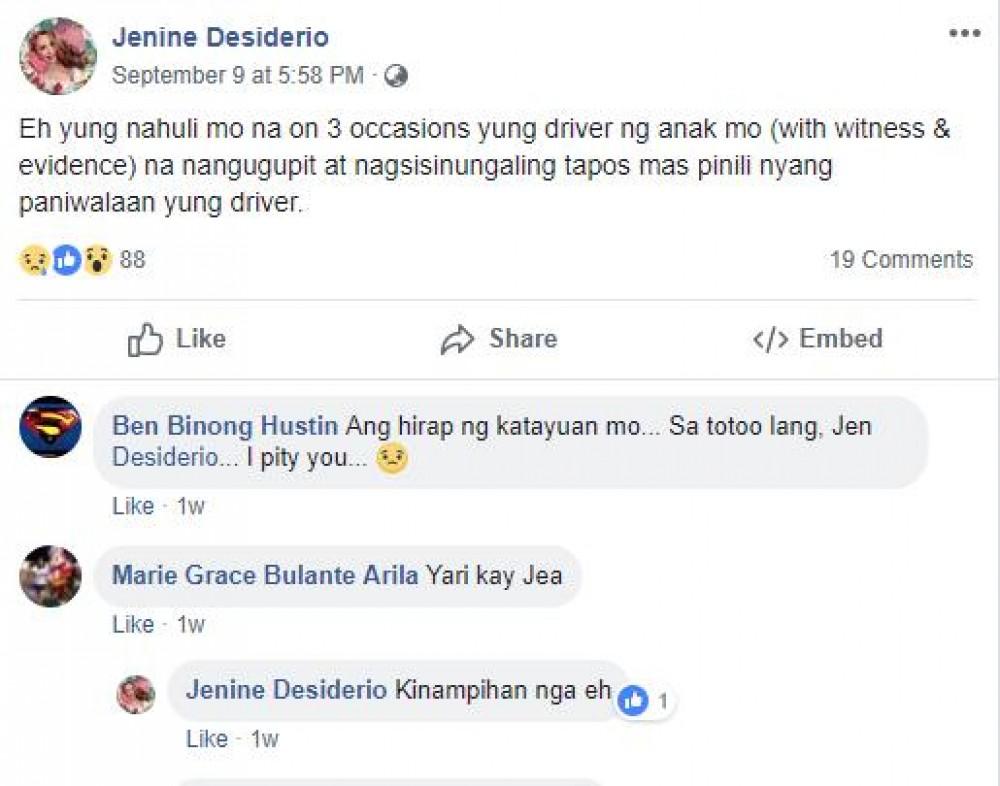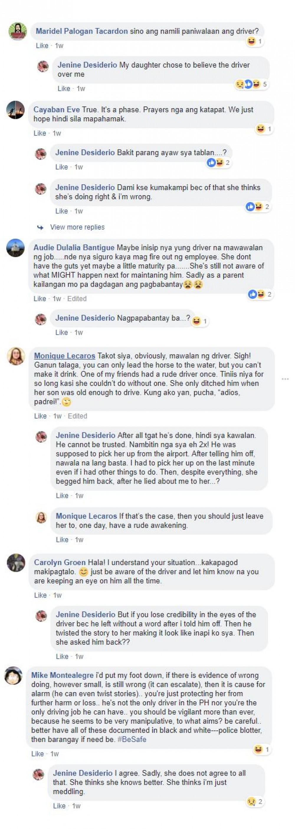 Makikita rin sa palitan ng komento ni Jenine sa ilang netizens ang pagkadismaya nito sa tingin ng anak niya na nakikialam ito sa kaniyang buhay.