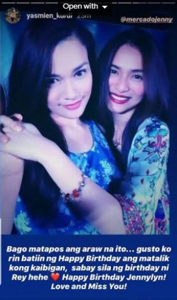 Yasmien Kurdi, who Jennylyn beat for the title of the Ultimate female survivor in the first season of StarStruck, penned a heartfelt message to her good friend via Instagram Story.