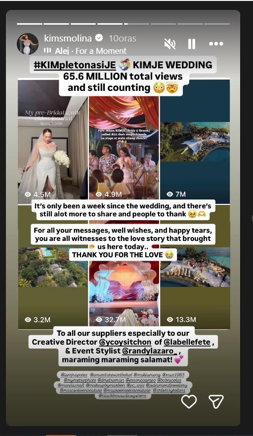 Meanwhile, Jerald's wife, Kim Molina, also took to social media to thank everyone for their amazing support and their heartfelt congratulations. In fact, their wedding generated over 65 million views across all social media platforms.