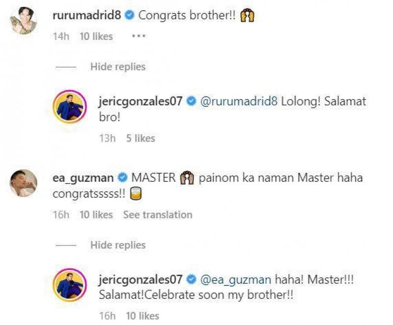 Kasunod nito, ilang mga kaibigan ni Jeric sa show business ang nagpaabot ng kanilang pagbati sa aktor tulad nina Ruru Madrid at EA De Guzman.