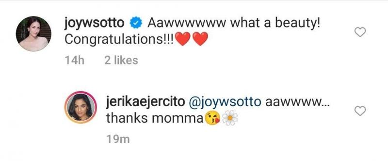In the comments section, local celebrities and personalities such as Joy Woolbright-Sotto, Patrick Garcia, and Alessandra De Rossi congratulated Jerika for her newborn baby girl.