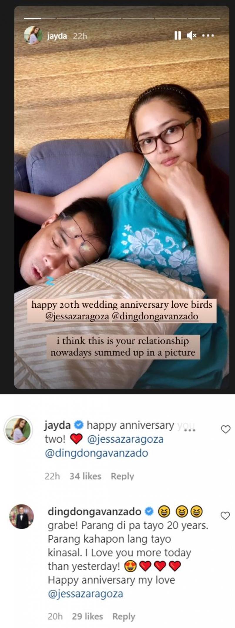 Time flies for long-time showbiz couple Jessa Zaragoza and Dingdong Avanzado, who celebrated their 20th wedding anniversary yesterday, March 18.