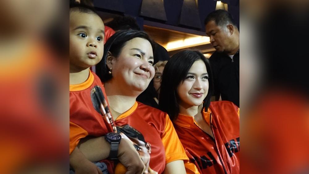 Proud na suot ni Jillian ang bright orange team gear ni Eman habang nanonod ng laban ringside kasama ang pamilya ni Eman, kabilang ang nanay nitong si Joanna Bacosa.