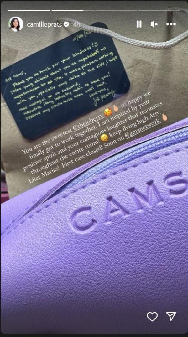Sa Instagram Story ni "Atty. Lilet Matias," ang pangalan ng karakter ni Jo Berry sa kanyang bagong serye, inilarawan niya si Camille na napakabuting katrabaho.
