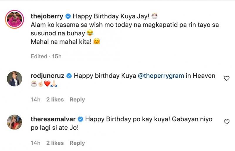 "Happy birthday Kuya @theperrygram in heaven," ani Rodjun.