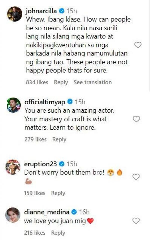 Makikita sa comment section ng kanyang Instagram na ipinagtanggol siya ng ilang showbiz personalities. Isa na rito ang former Encantadia star na si John Arcilla.