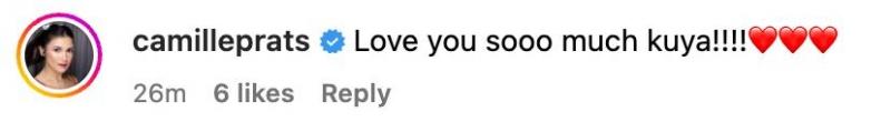 Meanwhile, Camille replied to her brother's post with a, “Love you sooo much kuya!!!!”