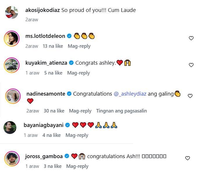 Several celebrities also commented on the actor's social media post and congratulated Ashley, including Kapuso host Kuya Kim Atienza and Sparkle actress Nadine Samonte.