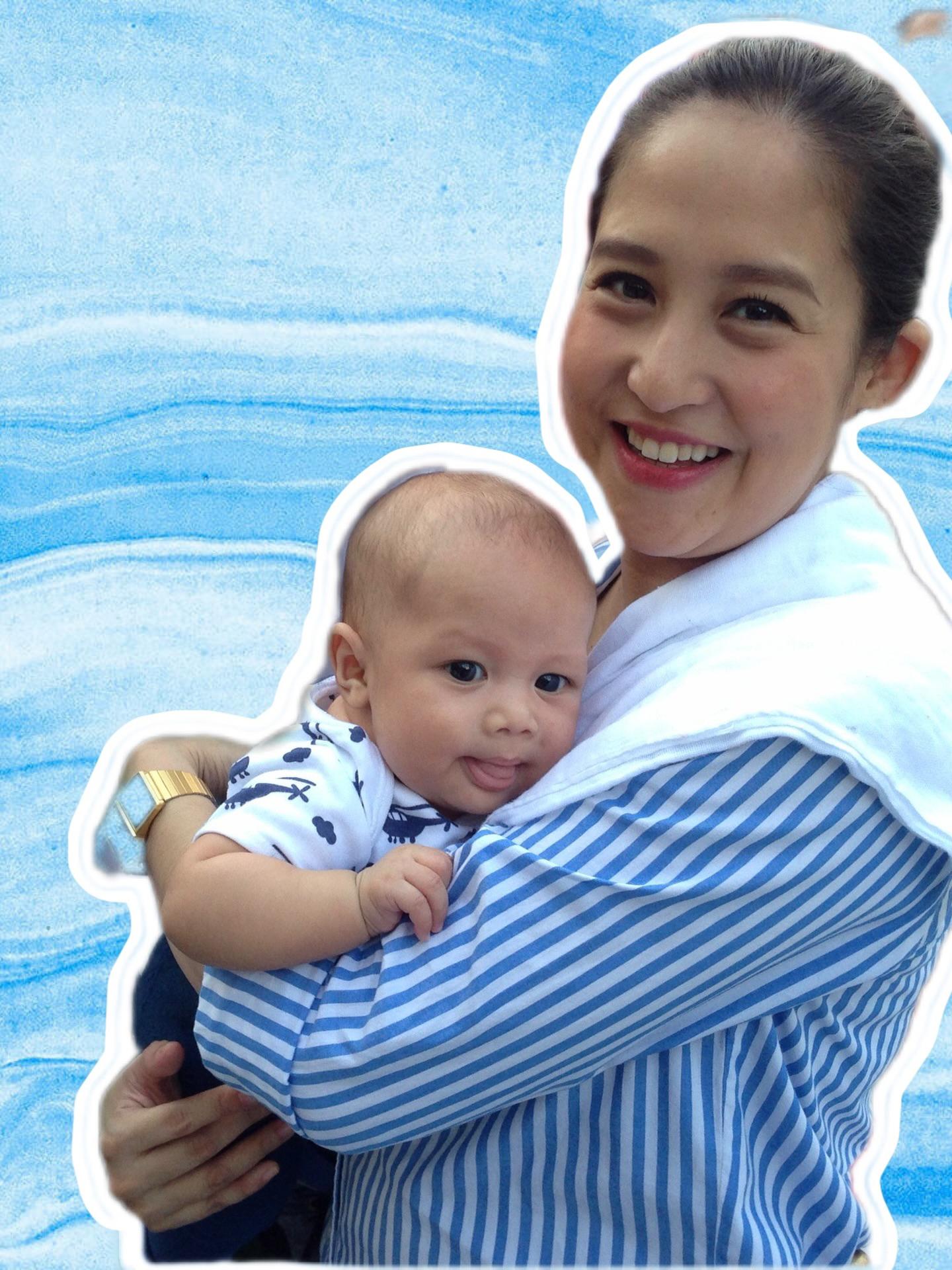 Ang una ay recent picture nila kasama ang asawang si Rivermaya drummer Mark Escueta. Ang pangalwa naman ay throwback noong sanggol pa ito at karga ni Jolina.