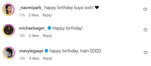 In the comments section, Josh received a lot of love through birthday messages from his loved ones and fellow Kapuso celebrities, including Naomi Park, Michael Sager, and Mavy Legaspi.