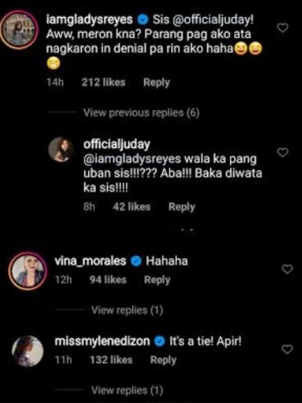 Ani Gladys, "Sis @officialjuday! Aww, meron kna? Parang pag ako ata nagkaroon in denial pa rin ako hahaha."