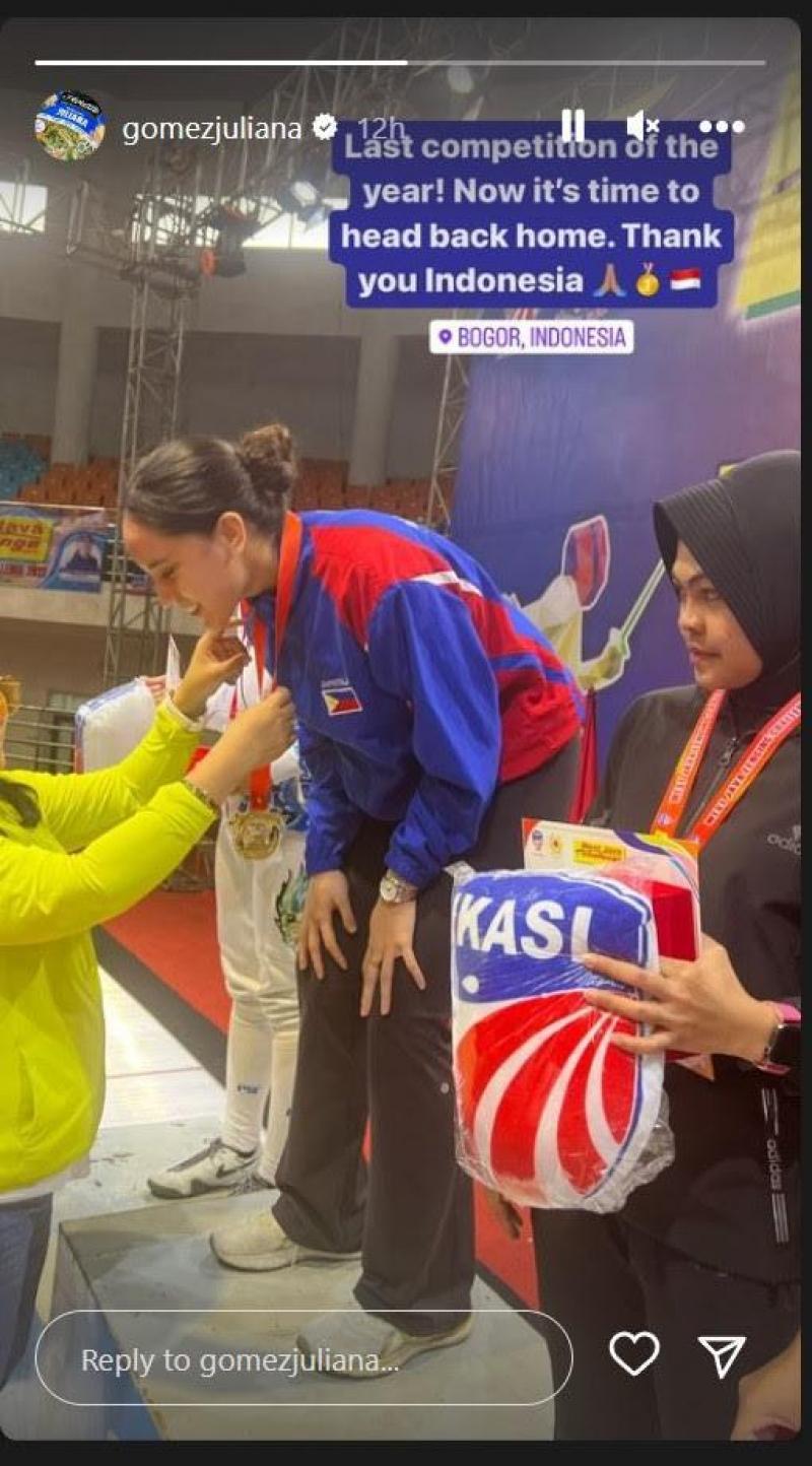 He posted, “Congratulations @gomezjuliana for winning the Gold in the West Java Fencing Challenge 2022 in [Bogor], Indonesia.