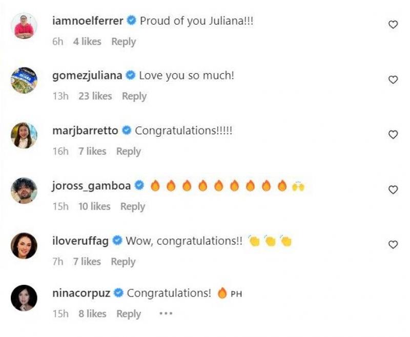 Many celebrities also commented on Goma's post and congratulated Juliana for a job well done.