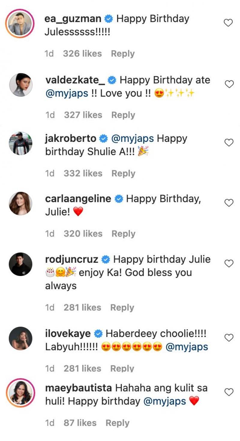 Edgar Allan Guzman, Kate Valdez, and other friends of Julie Anne also greeted her on her birthday.