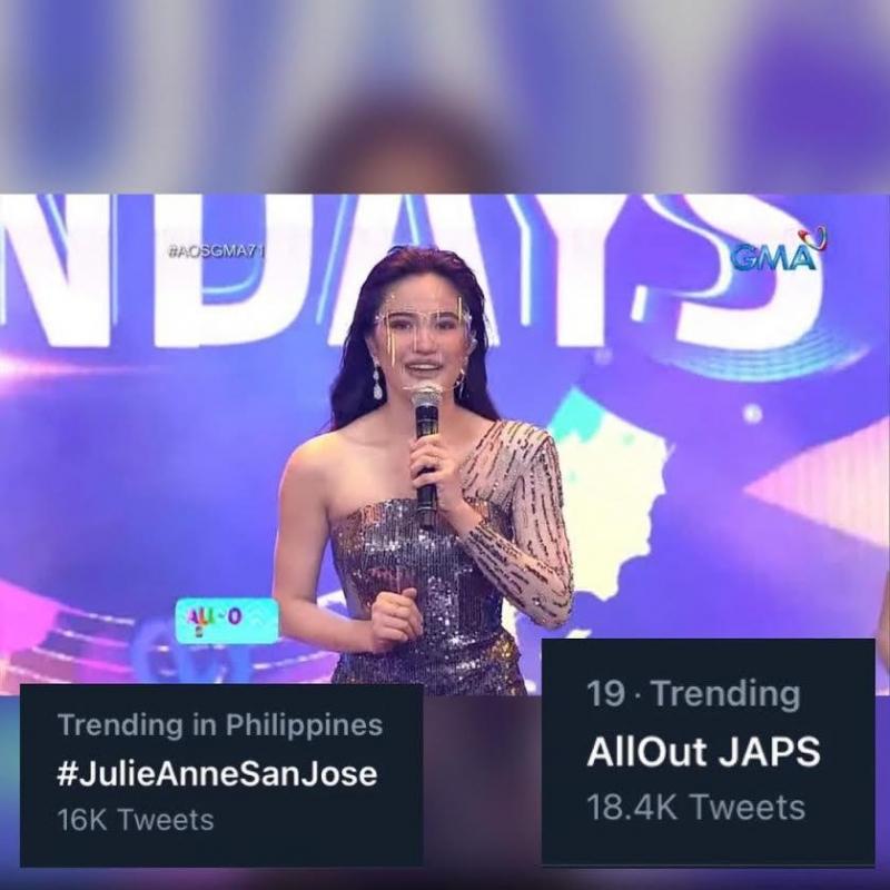 Kasabay ng selebrasyon na ito ay ang pinag-usapang performance ni Julie sa programa kaya naman nag-trend ang #JulieAnneSanJose at 'AllOut JAPS.'