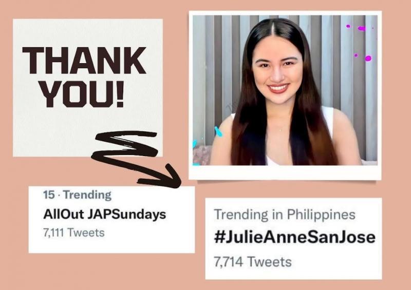 Julie Anne continues to get much love from fans online, especially for her performances in weekly variety show All-Out Sundays. Her recent cover of Aegis hits had fans rooting for her on Twitter.
