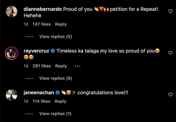 “Timeless ka talaga my love so proud of you,” Rayver wrote on Julie Anne's Instagram account.