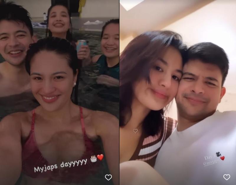 Rayver uploaded a video of him and Julie on a night swim with a group of people, followed by a story of him with Julie captioned "Day 2 @myjaps" with a movie camera emoji.