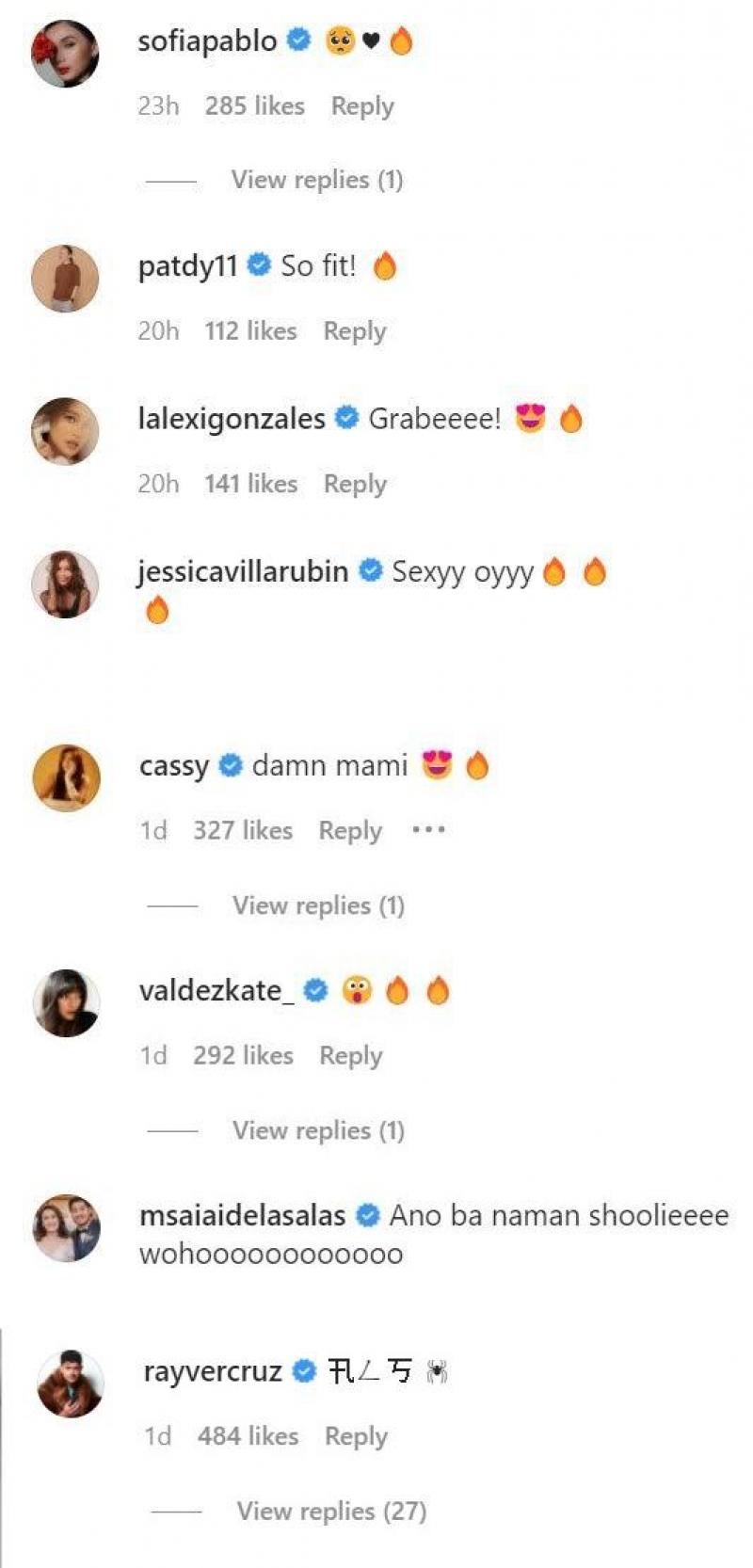 Some of the celebrities expressing admiration for Julie Anne include Sofia Pablo, Lexi Gonzales, Jessica Villarubin, Cassy Legazpi, Aiai delas Alas, and Rayver Cruz.