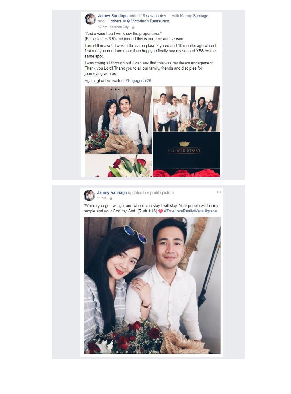Bubble Gang star Jan Manual happily announced on Facebook that he will soon marry the woman of his dreams after his non-showbiz girlfriend named Jamey Santiago said "yes" when he popped the big question.