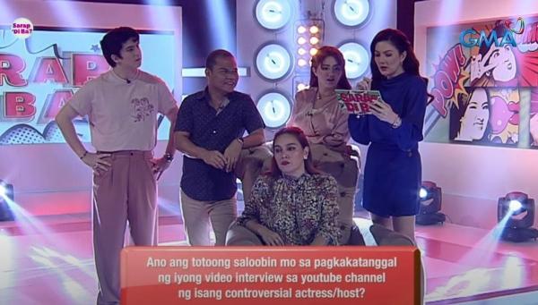 Sa "Hot Seat" segment ng Sarap, 'Di Ba? tinanong si K ng host nitong si Carmina Villarroel kung "Ano ang totoong saloobin mo sa pagkakatanggal ng iyong video interview sa YouTube channel ng isang controversial actress host?"