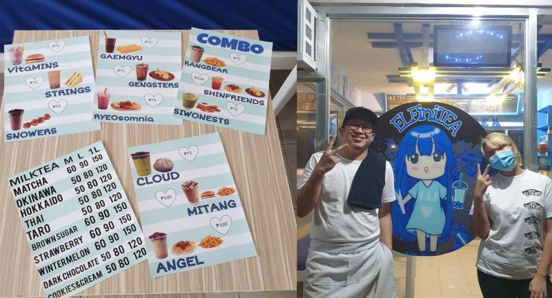 Opened by Clarette Faye Viz in 2019, Elfinitea is a bubble tea shop dedicated to the OT15 members of the legendary boy group. Inside, the interiors are designed to complement the Super Junior color of pearl sapphire blue and the many posters and photo cards.