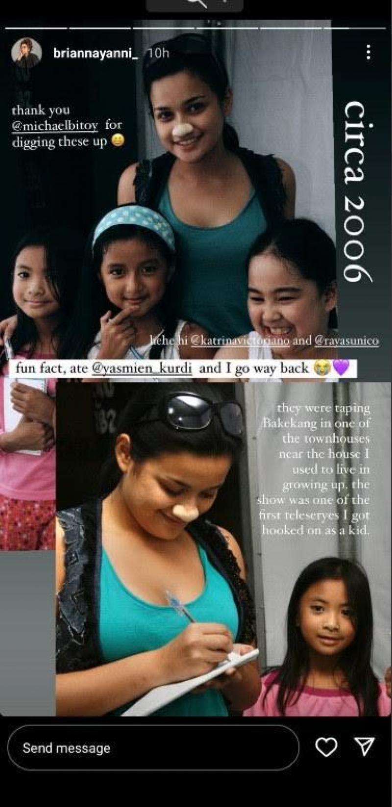 In her post via Instagram Story, Brianna's father, multi-awarded comedian Michael V. unearthed an old photo of her with Yasmien, when she was taping for the drama series Bakekang, which aired from 2006 to 2007.