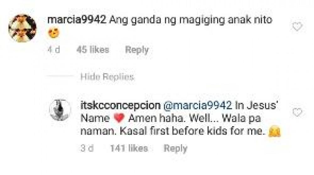 Meanwhile, KC Concepcion also responded to a netizen's comment about her and Pierre having cute kids in the future.