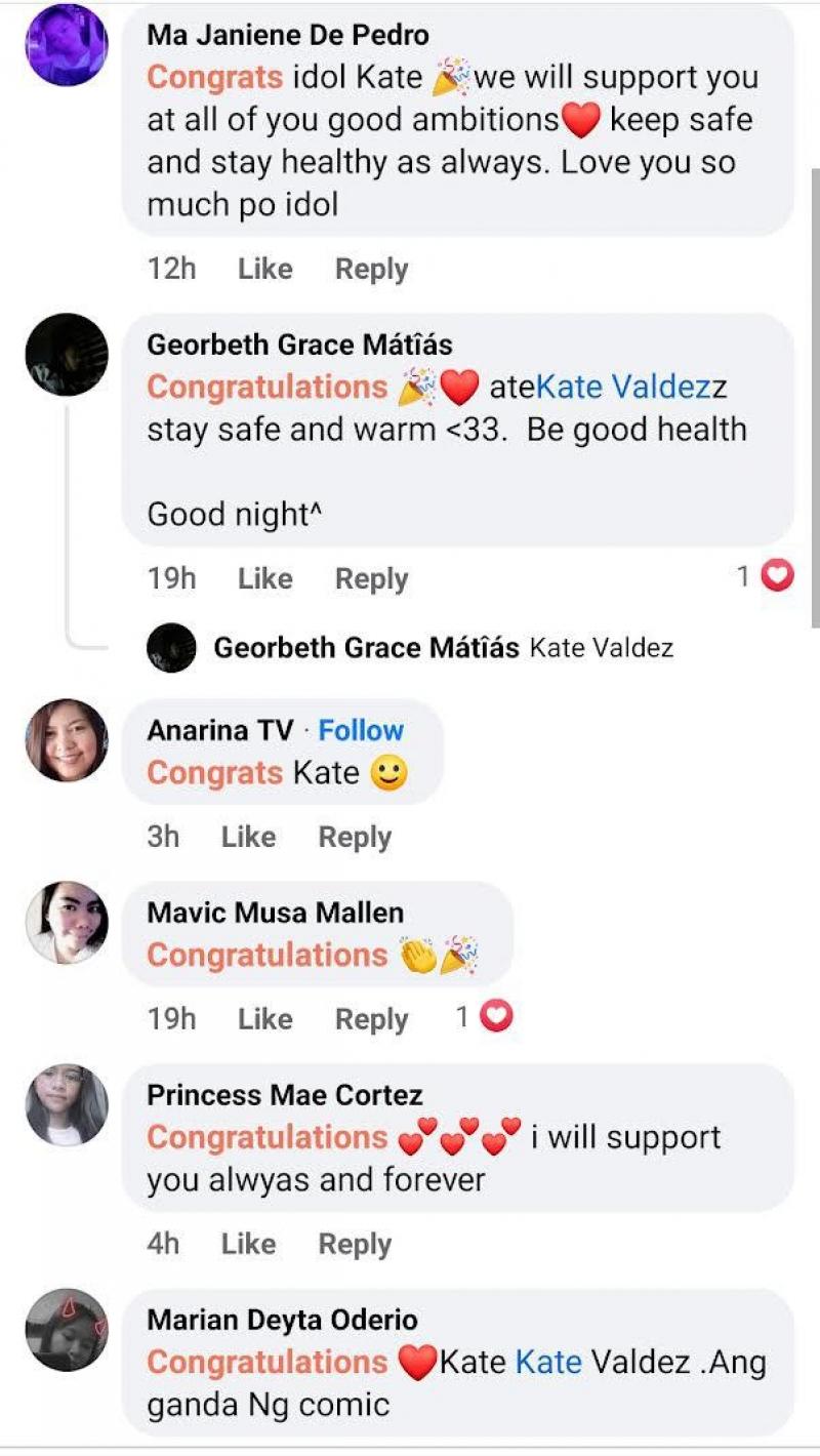 On the same day, Kate Valdez shared the Fil-Am journalist's exciting post with a crying face emoji and was showered with love and support by her fans in the comments section.