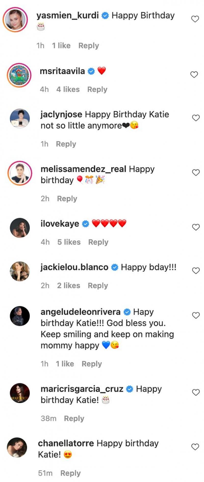 In the comment section of her post, Katrina's friends in showbiz like Las Hermanas actress Yasmien Kurdi sent their greetings.