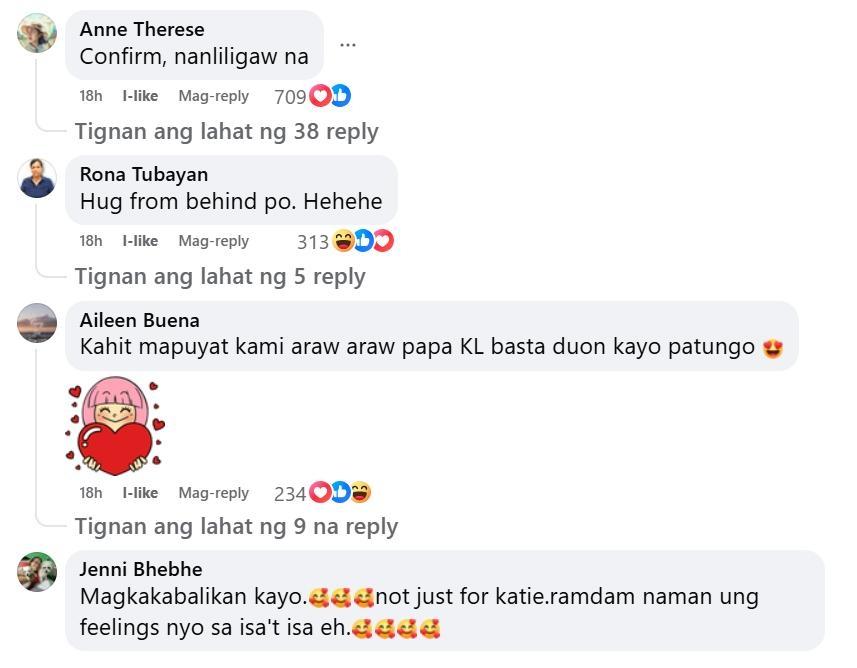 Katulad sa post ni Katrina, libo-libo rin ang mga reaction, comments at shares nito. Higit sa 100,000 rin ang reactions nito, higit sa 5,000 ang comments, at na-share na higit sa 2,000 beses. Kilig din ang mga nag-comment sa post na ito ni Kris.