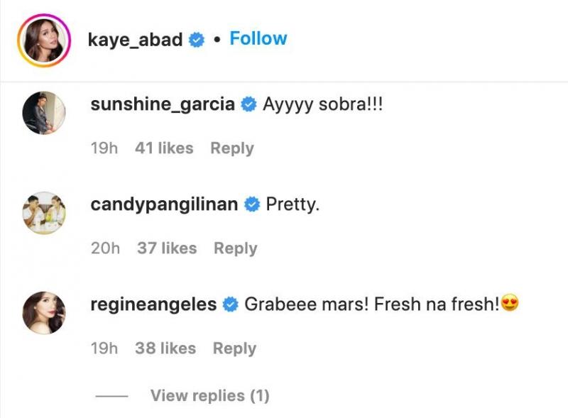 Agad naman na nagkomento rito ang kanyang mga kaibigan gaya nina Sunshine Garcia, Regine Angeles, at Candy Pangilinan.
