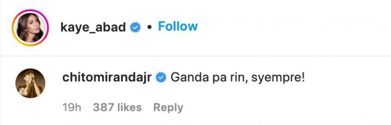 Maging ang kanyang ex-boyfriend at bokalista ng Parokya ni Edgar na si Chito Miranda ay sumagot din sa kanyang post.