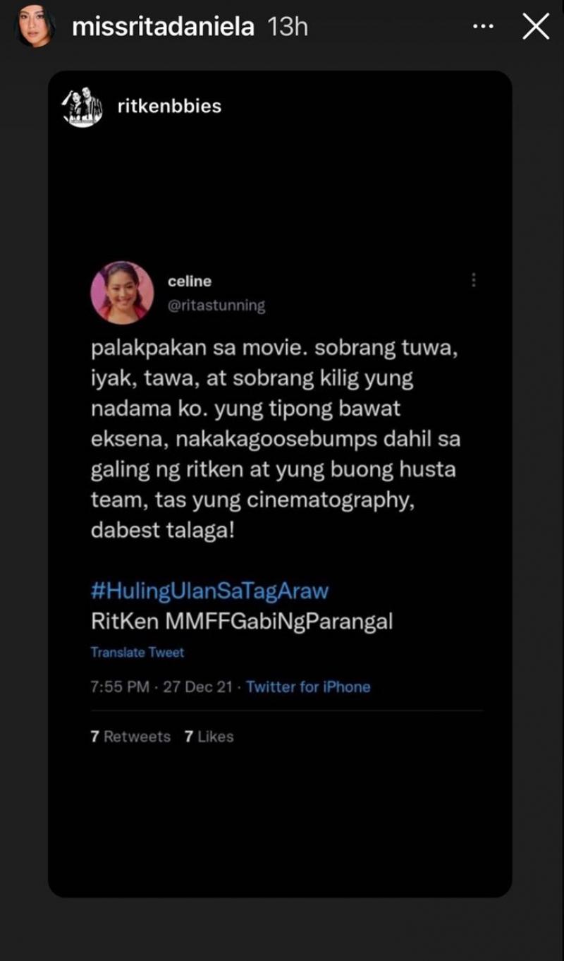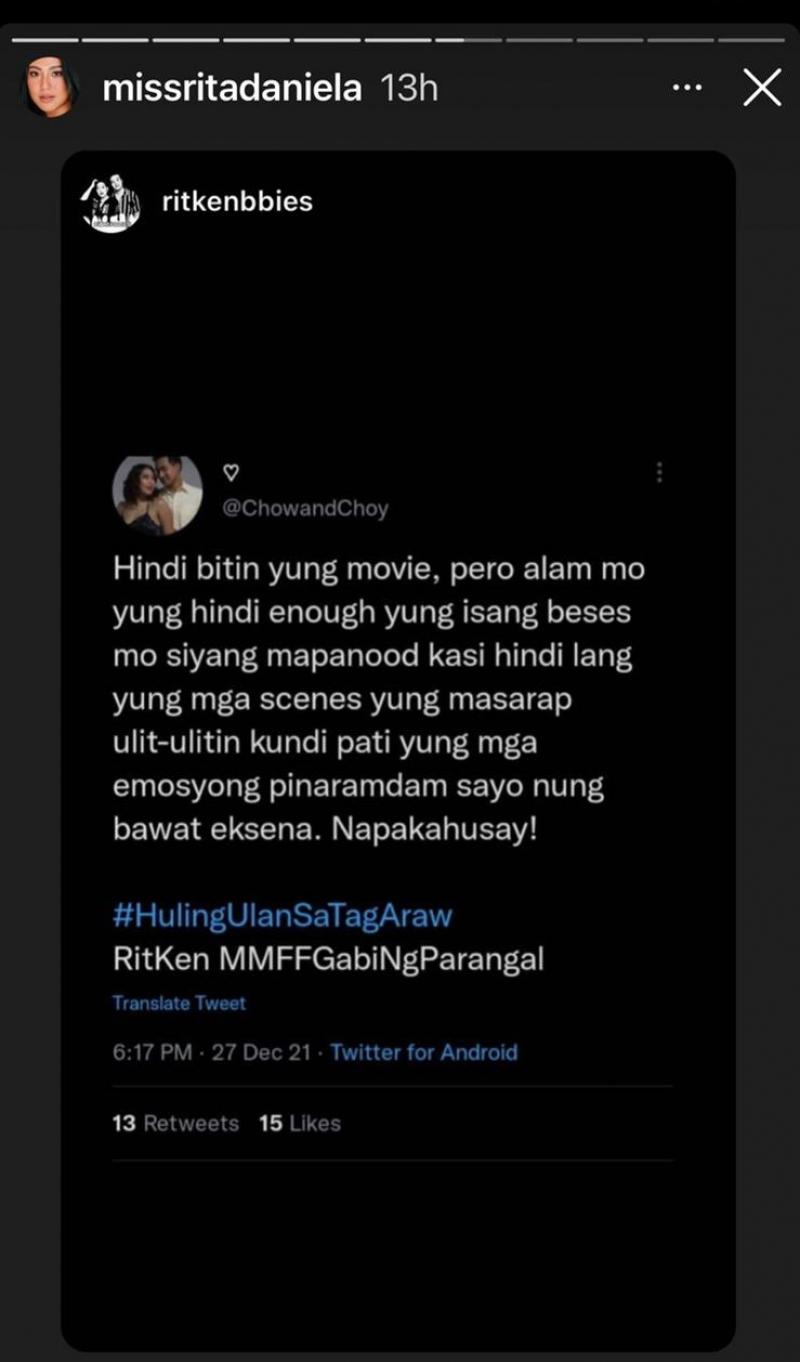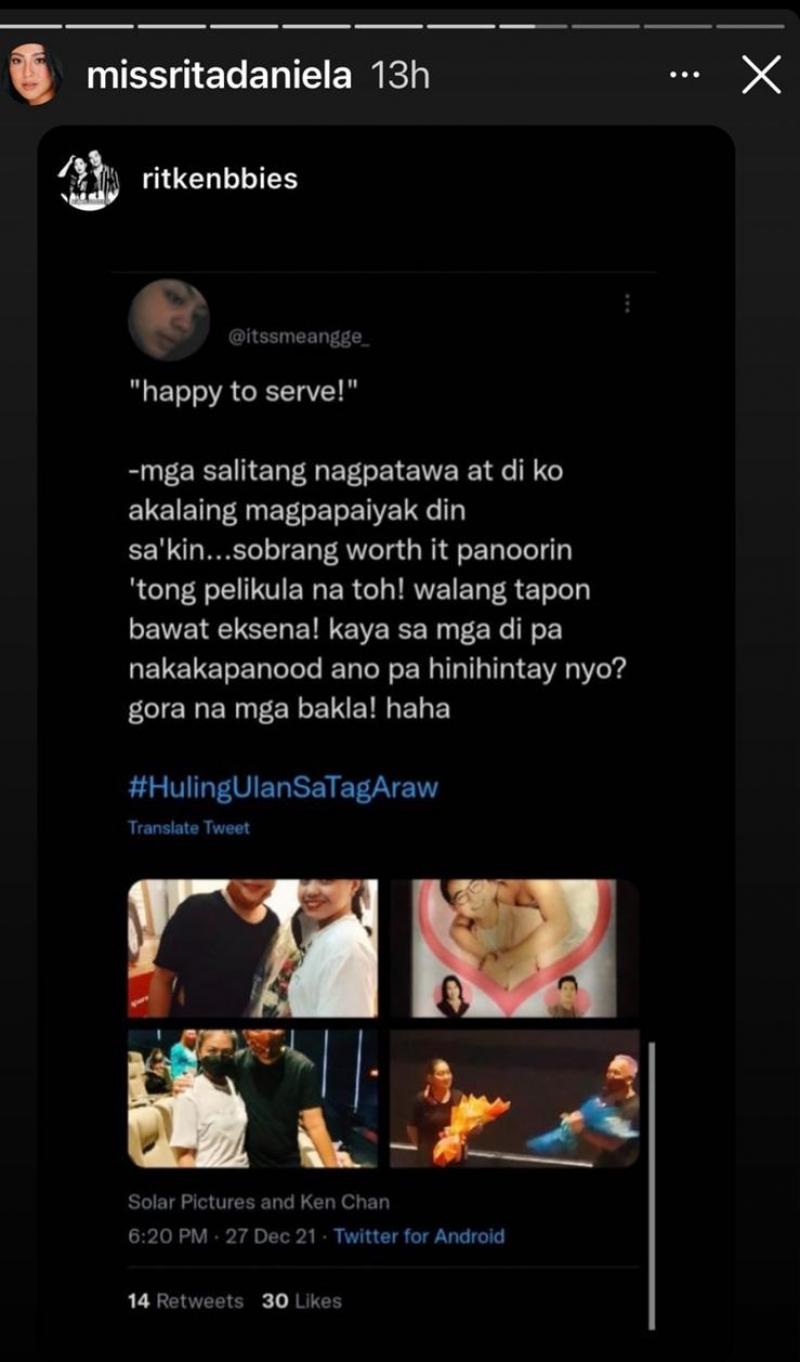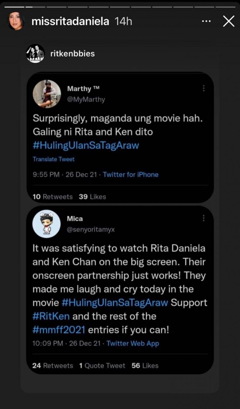 Magagandang reviews ang bumungad sa mga bida ng Metro Manila Film Festival (MMFF) 2021 movie na Huling Ulan Sa Tag-araw na sina Ken Chan at Rita Daniela.