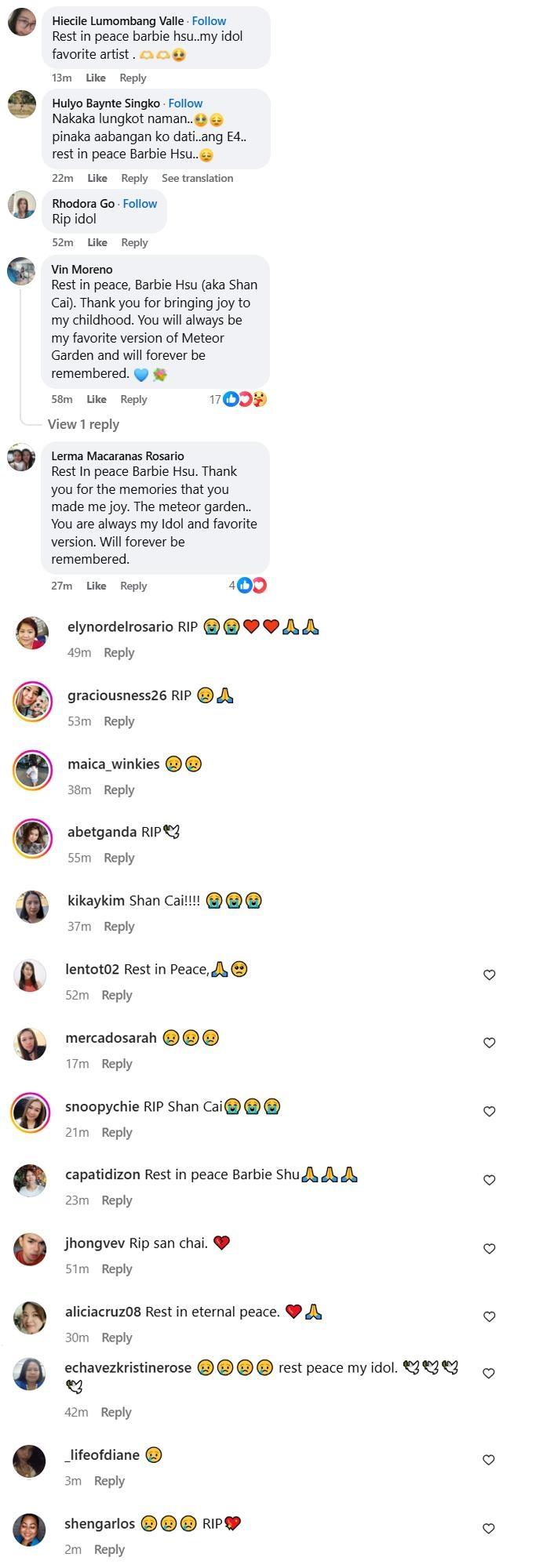 Many Pinoy fans also took to social media to mourn the death of Barbie Hsu. Meteor Garden aired in the Philippines in 2003.