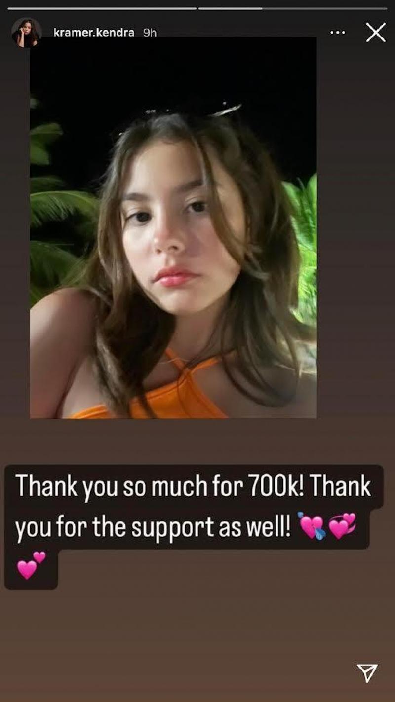 Doug and Cheska Kramer's daughter Kendra just hit more than 700,000 followers on Instagram.