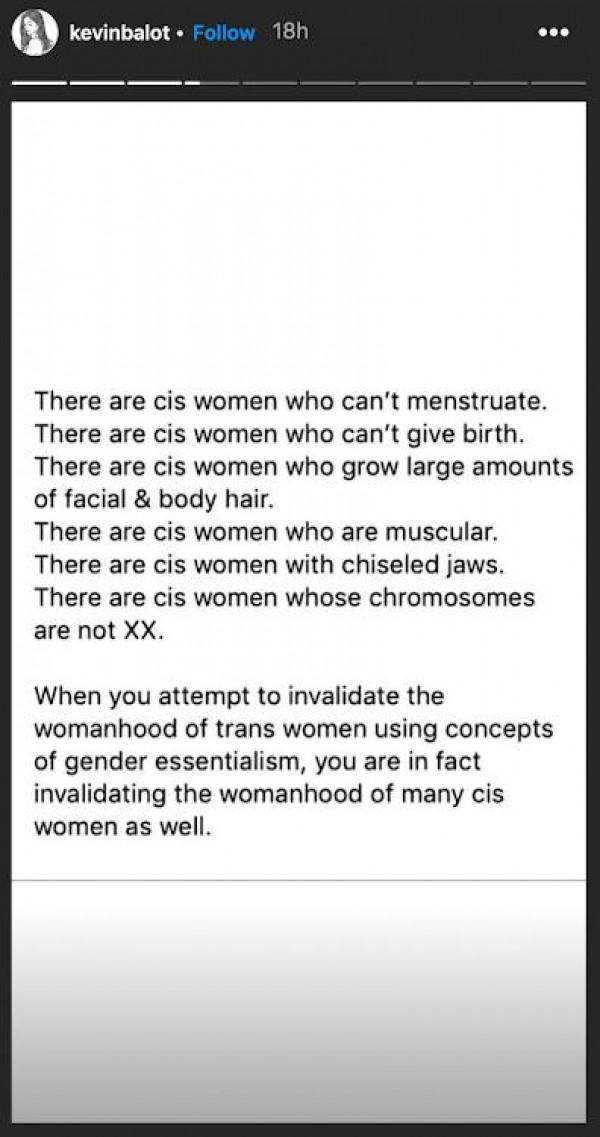 She said, “There are cis women who can't menstruate. There are cis women who can't give birth.