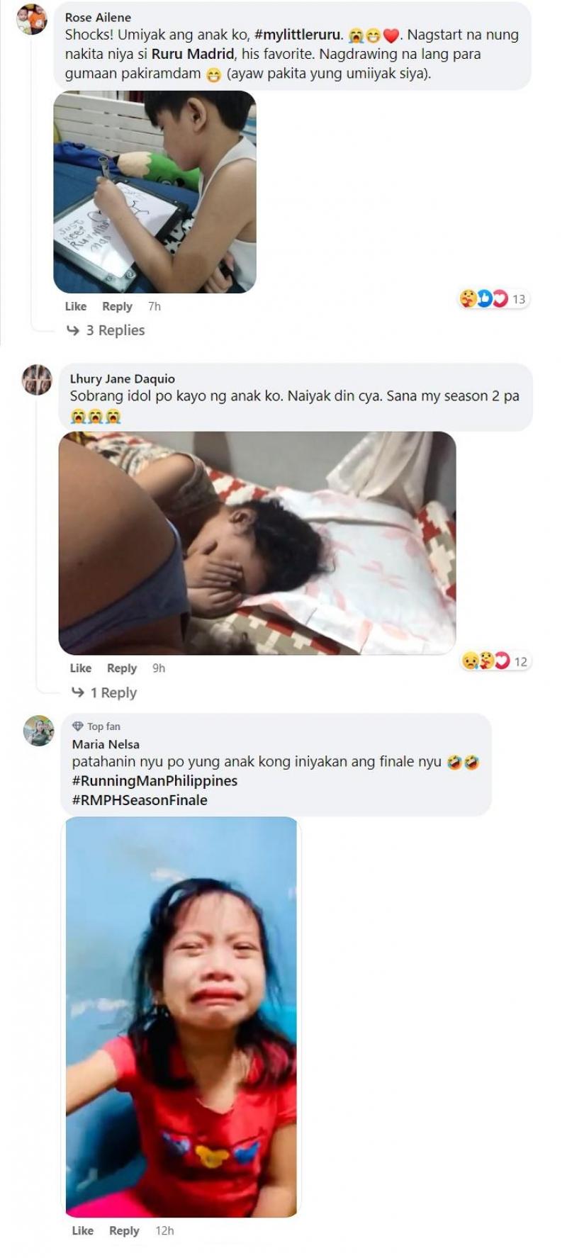 Ang ilan sa mga magulang, ibinahagi ang mga video at larawan ng kanilang mga anak na umiiyak nang matapos umere ang season finale ng Running Man Philippines.