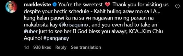 Sa comments section ay nagpasalamat si Mark kay Kim sa pagbisita nito kahit pa hectic ang schedule, at tinawag siyang “the sweetest” dahil dito.