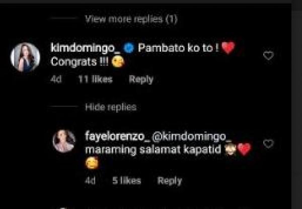 Kim Domingo reacts to Faye Lorenzo Instagram post