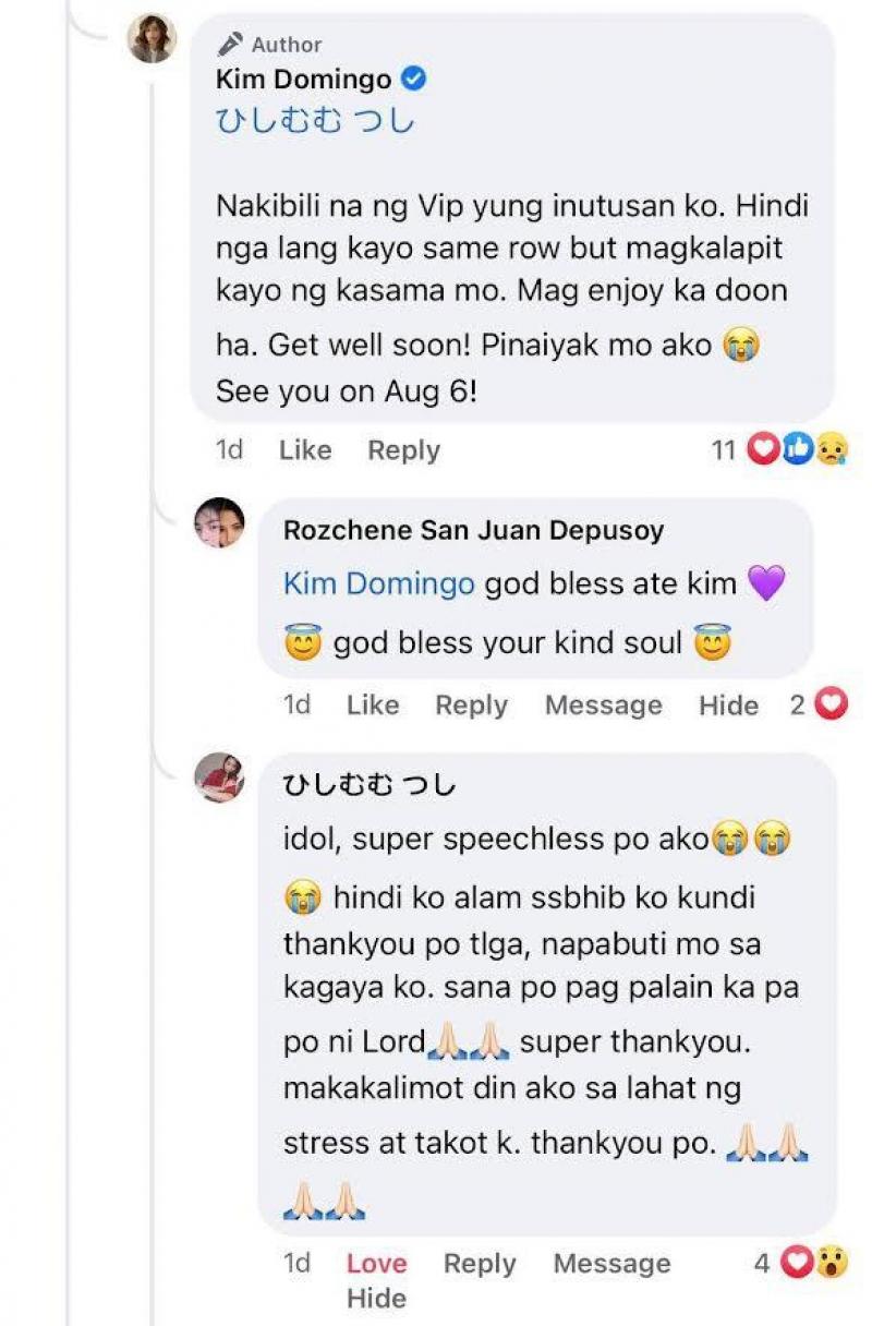 Sagot ni Kim, “Aww! Ako na bahala sa kasama mo manood. Magpabili ako ng ticket niya. Kapag hindi mo kaya 'wag mo pilitin ha. Pero see you! [pray at heart emoji].”