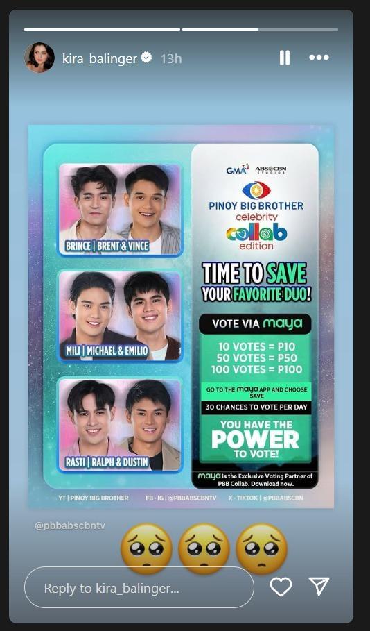 Kira and her teammate, Sparkle actress Charlie Flemming, were ended their PBB journey on April 12 after receiving the lowest number of votes.