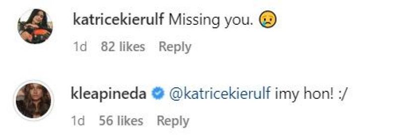 "Missing you," she wrote in the comment section. Klea replied, "imy hon :("