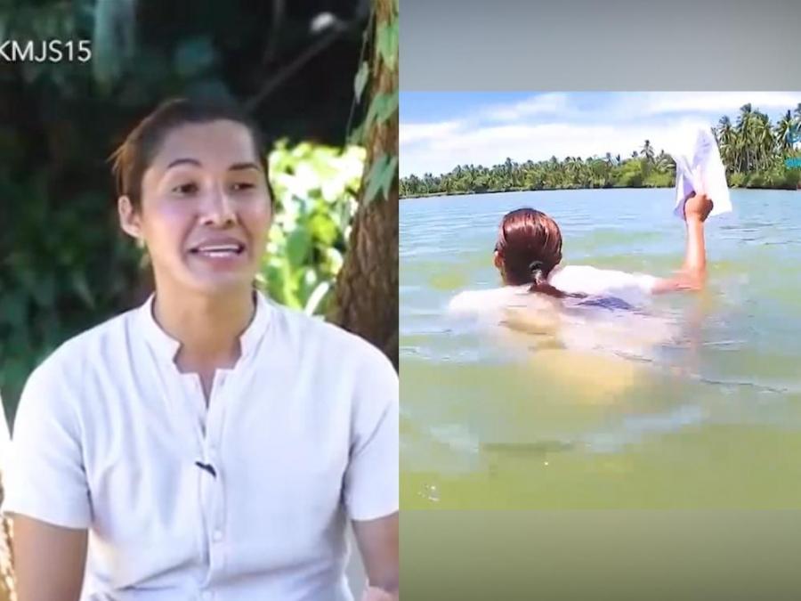 Kaya si teacher Moises, walang choice kundi languyin ang ilog.