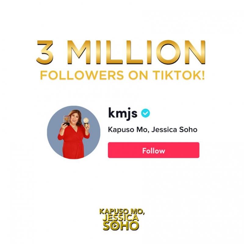 Hosted by GMA News pillar Jessica Soho, 'KMJS' now has 3.1 million followers on TikTok. Its account has over 39.6 million likes with over 550 million lifetime views.