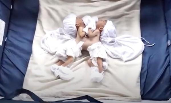 Sabik na inabangan ng mag-asawang Wilvien at Jessa Mae Gandia ang kanilang kambal na anak na isinilang sa gitna ng community quarantine period. Pero laking gulat na lamang ng mga ito nang makitang magkadikit ang dibdib ng kanilang mga anak.